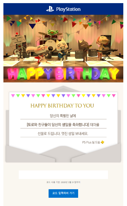 생일 축하 어쩌구가 보이길래, 생일 축하 할인 쿠폰을 보낸건가 했는데...