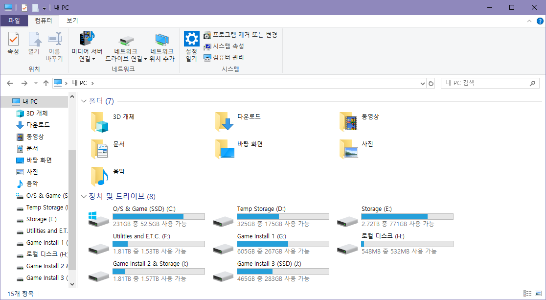 SSD 설치 후의 제 컴퓨터 상황입니다.