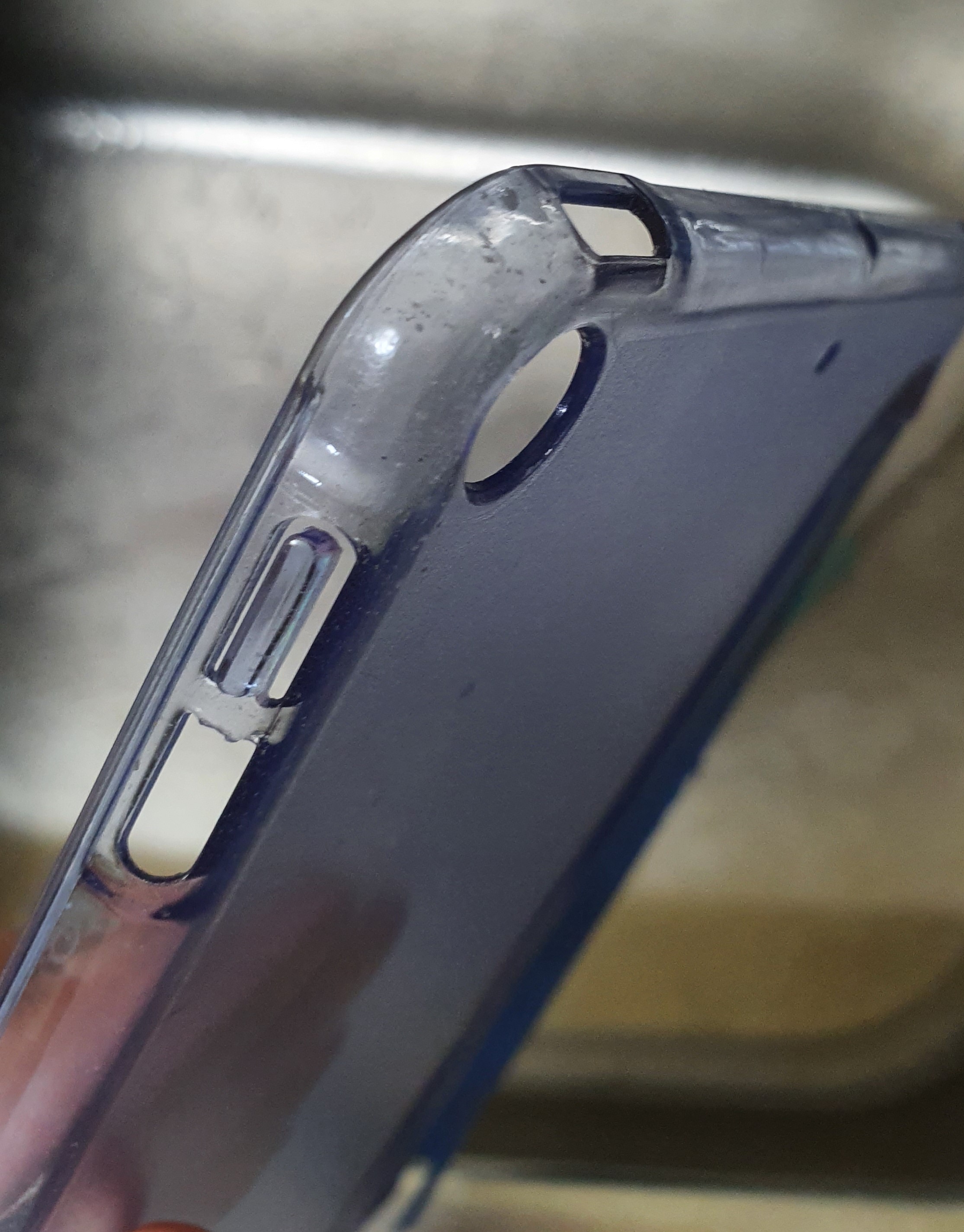 같은 ESR 케이스인데 후면이 플라스틱으로 되어 있어 조금 저렴해서 사용했습니다만, 1년 정도 사용하니 버튼부가 저리 깨져서 사용하기 너무 불편해서 미루고 미루다 리바운드 케이스로 재구매하게 되었습니다.