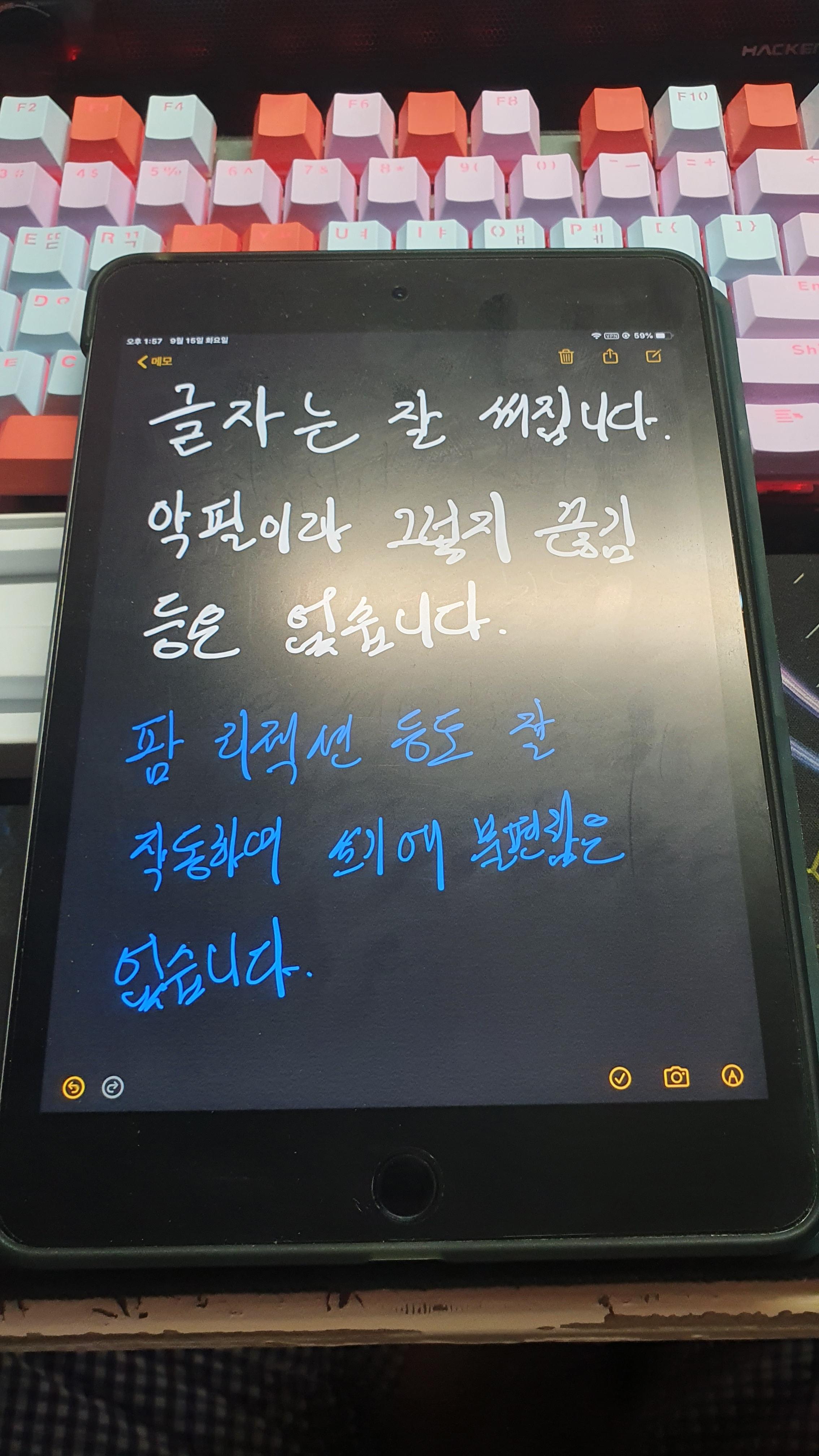 시험 삼아 아이패드 기본 메모앱에 글씨를 적어봤습니다.