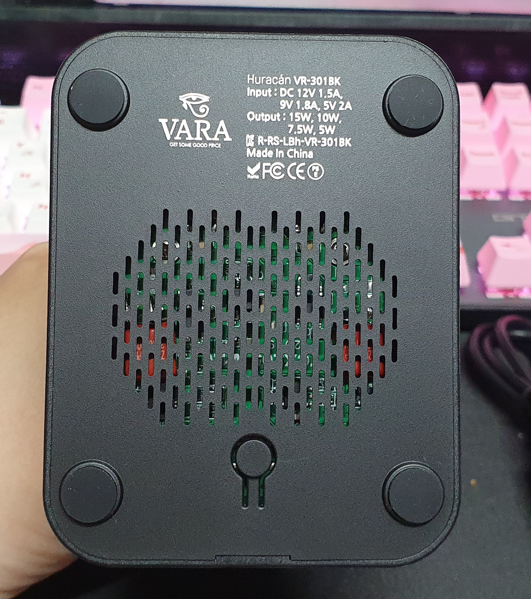 DC 12V 1.5A, 9V 1.8A, 5V 2A 인풋을 받으며, 아웃풋은 15W, 10W, 7.5W, 5W라고 표기되어있습니다.