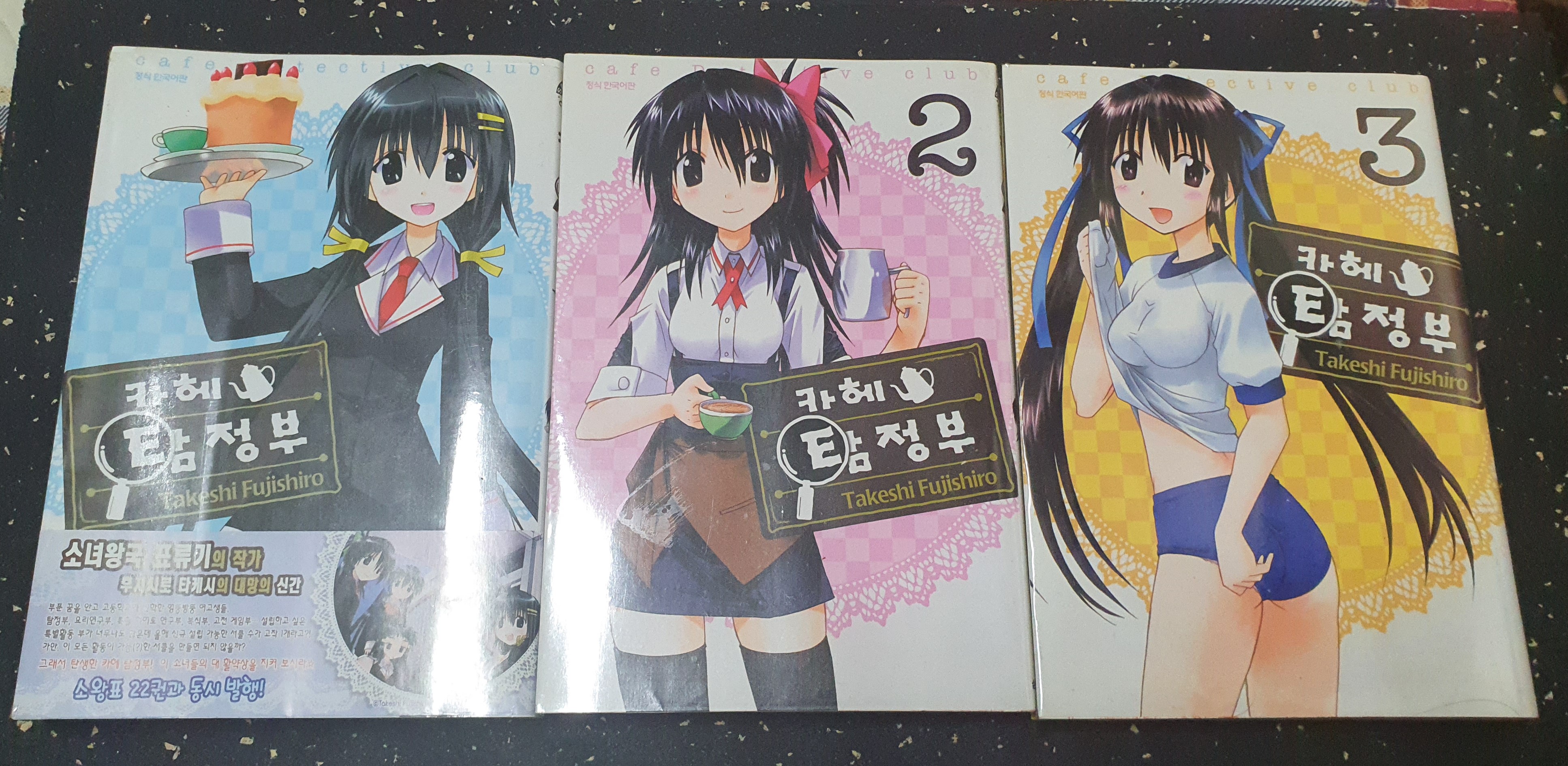 각자 인원수를 못 모으던 와중에 주연 중 한명인 에미나가 주연 5인방의 장점을 살릴 수 있는 '카페 탐정부'를 만들기를 제안하고 그걸 받아들여 신규 동아리를 만들게 되는 것으로 시작하는 만화입니다. 다만, 에미나의 혀가 너무 짧아 발음을 못 해서 카페가 카헤로... 그래서 제목도 '카헤 탐정부'