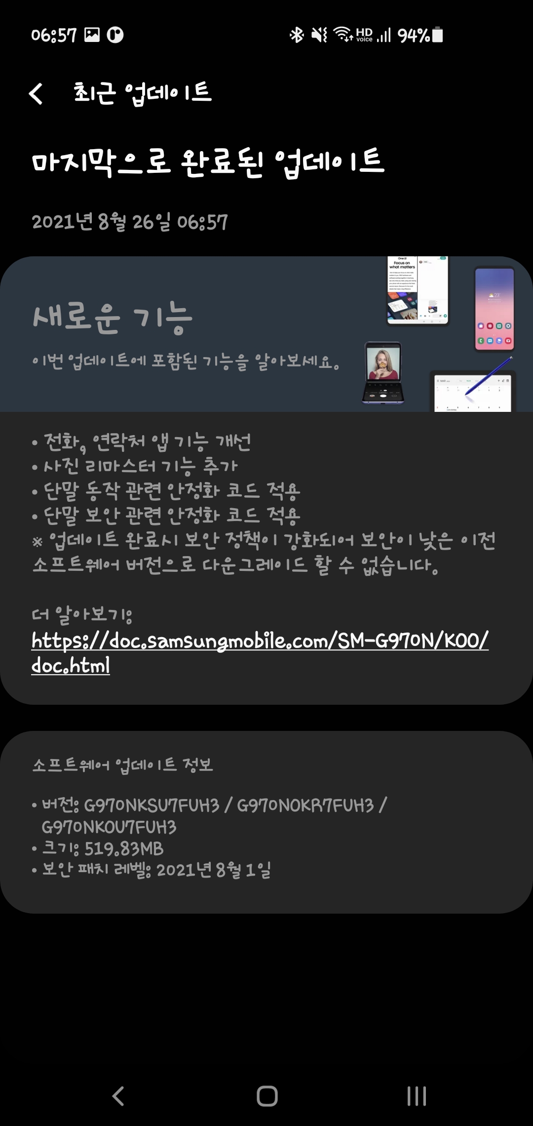 S10e 자급제 모델을 쓰고 있기에 OTA로 올려봤습니다.