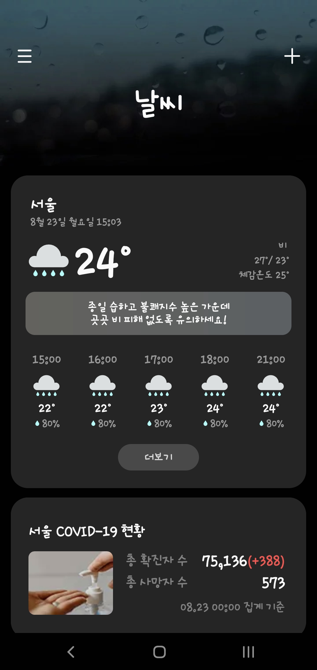 이번 주부터 갤럭시 날씨 어플 상단에 보이던 광고가 사라졌습니다.