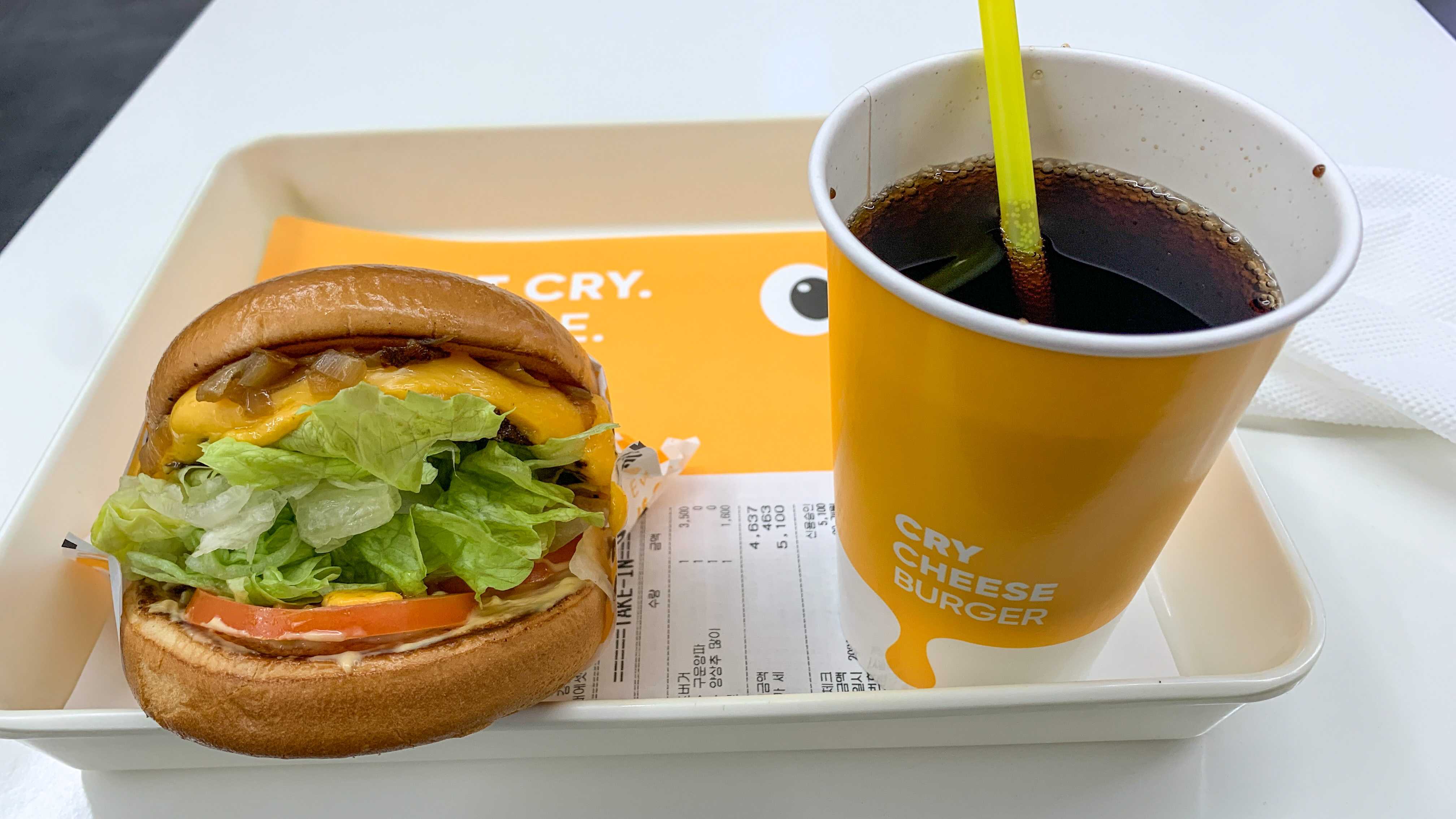 치즈버거에 구운양파, 양상추 많이, 콜라는 제로.