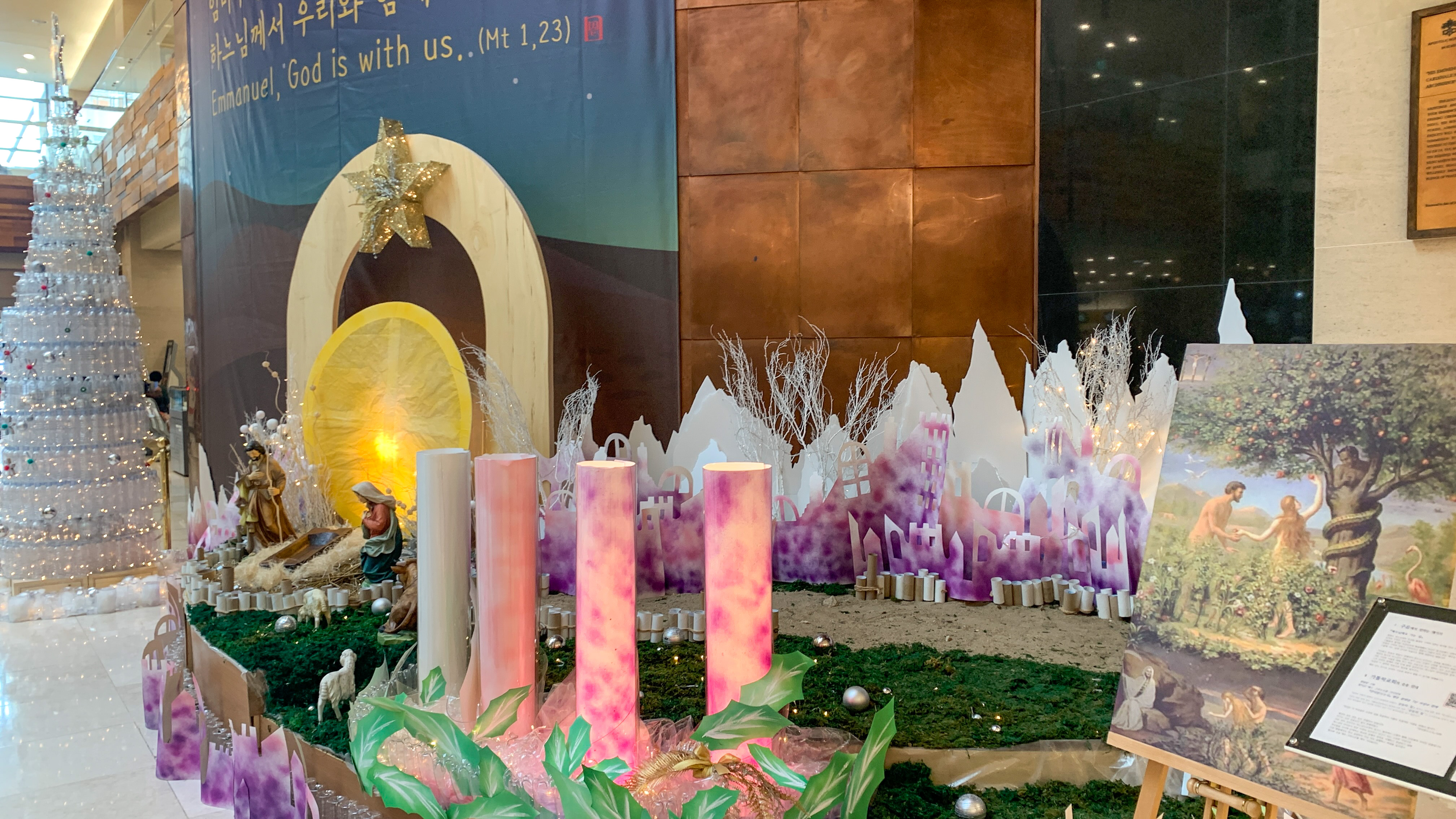 지난 달 6일에 찍은 서울성모병원 로비에 있던 구유 및 크리스마스 트리입니다. 천주교신자이지만 코로나 이후로 판공성사만 하고 온전한 미사를 드린지는 오래라 이런 구유 설치된 모습에 반갑고 좋았습니다.