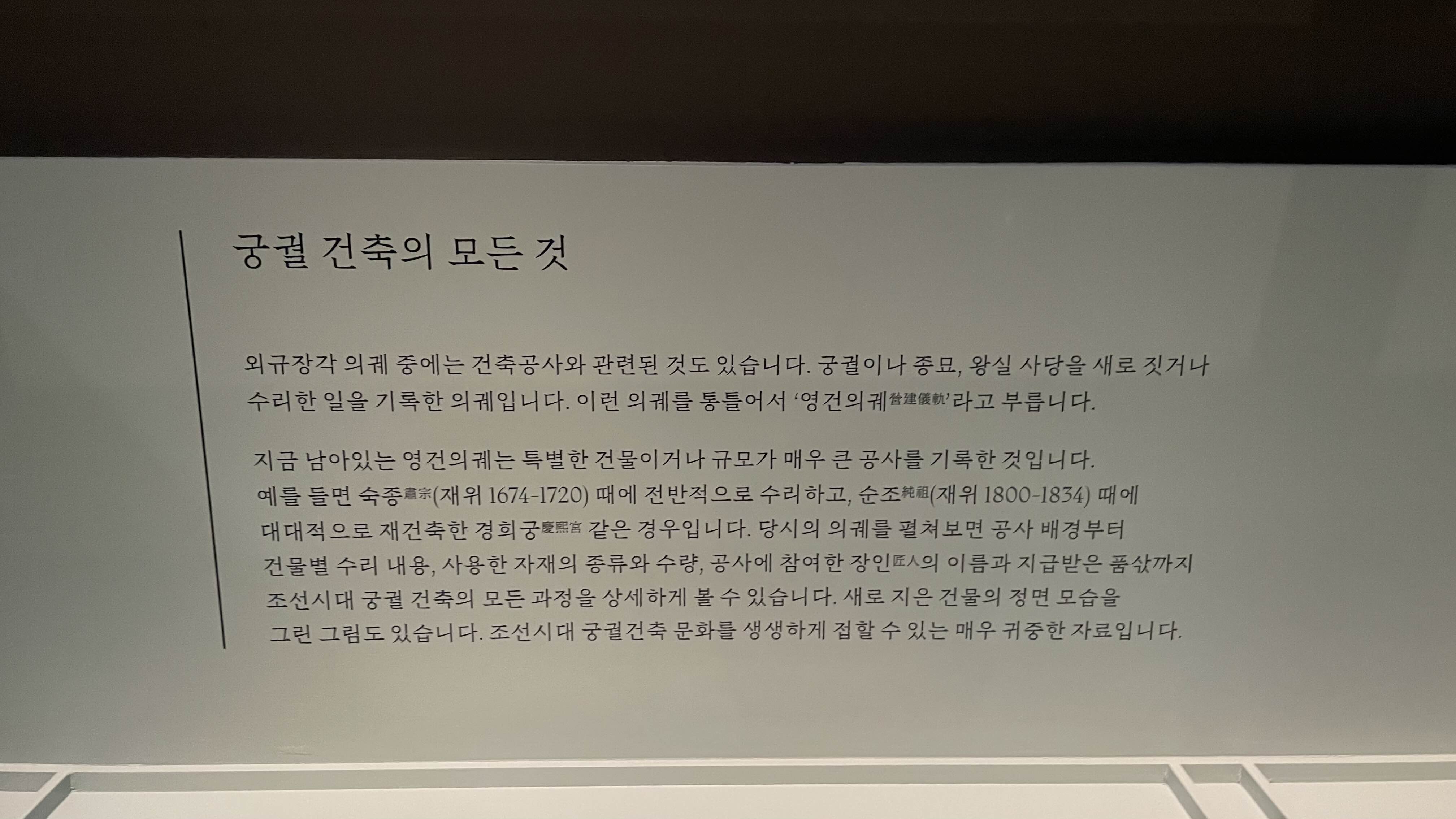 궁궐 등을 지을 때에도 의궤를 만들어 어떠한 구조로 지을건지를 다 기록으로 남겼고,